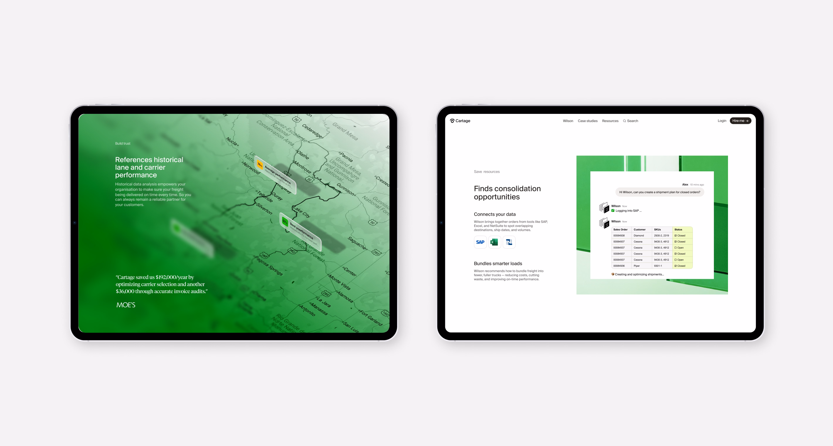 Our role was to craft Wilson’s digital presence to reflect the legacy of Cartage, a freight coordination software provider.