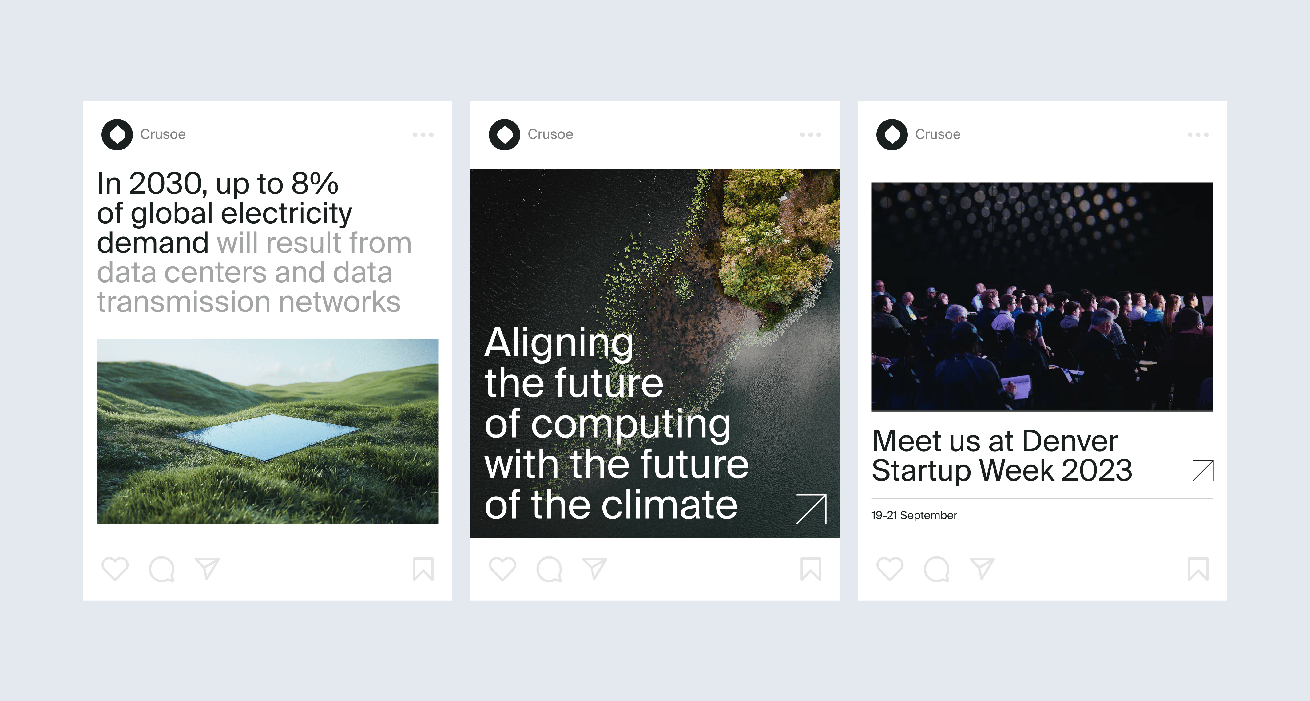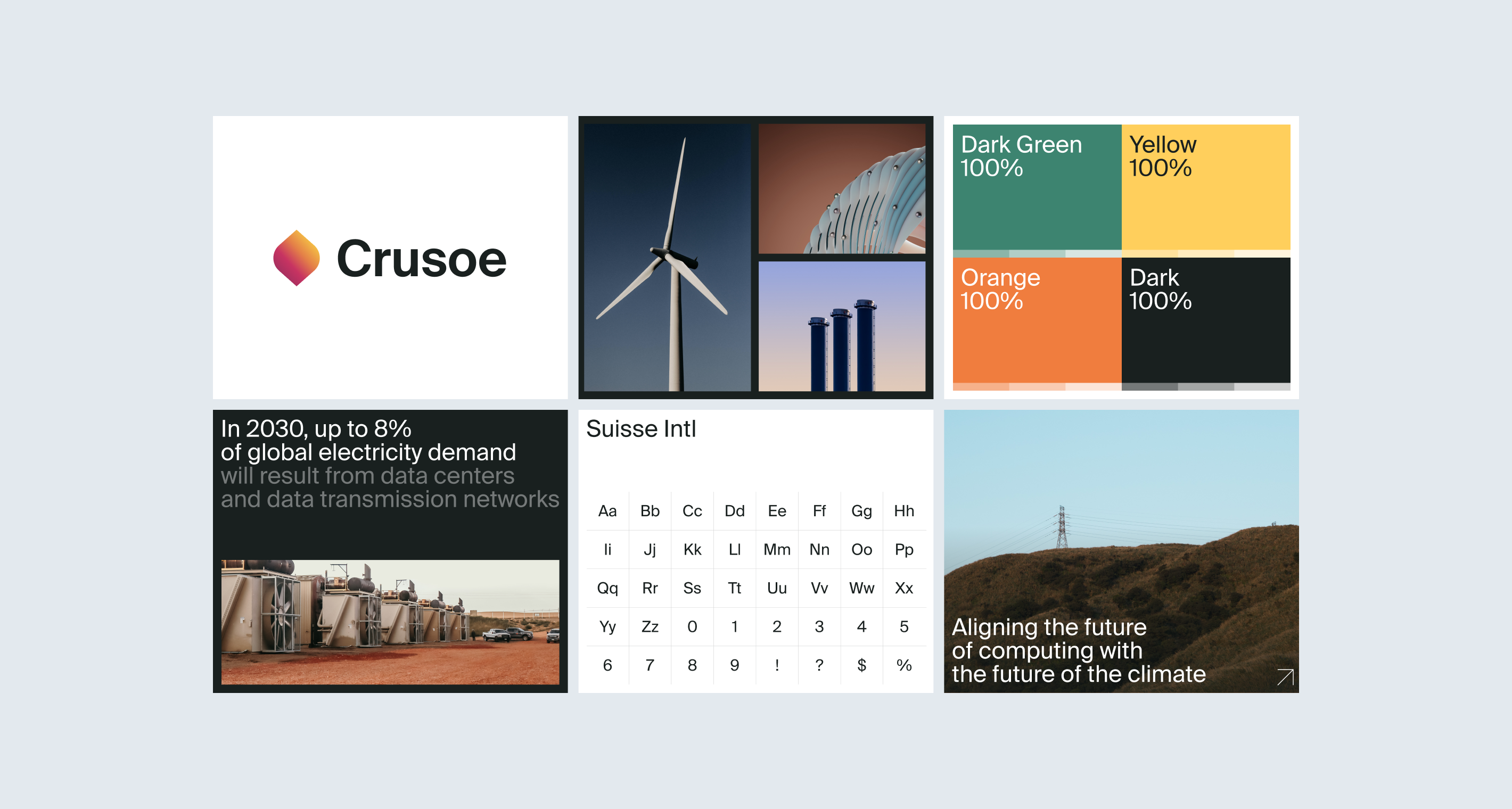 Crusoe is about a clean environment and efficient solutions, so the new brand is simple, open, and dynamic.