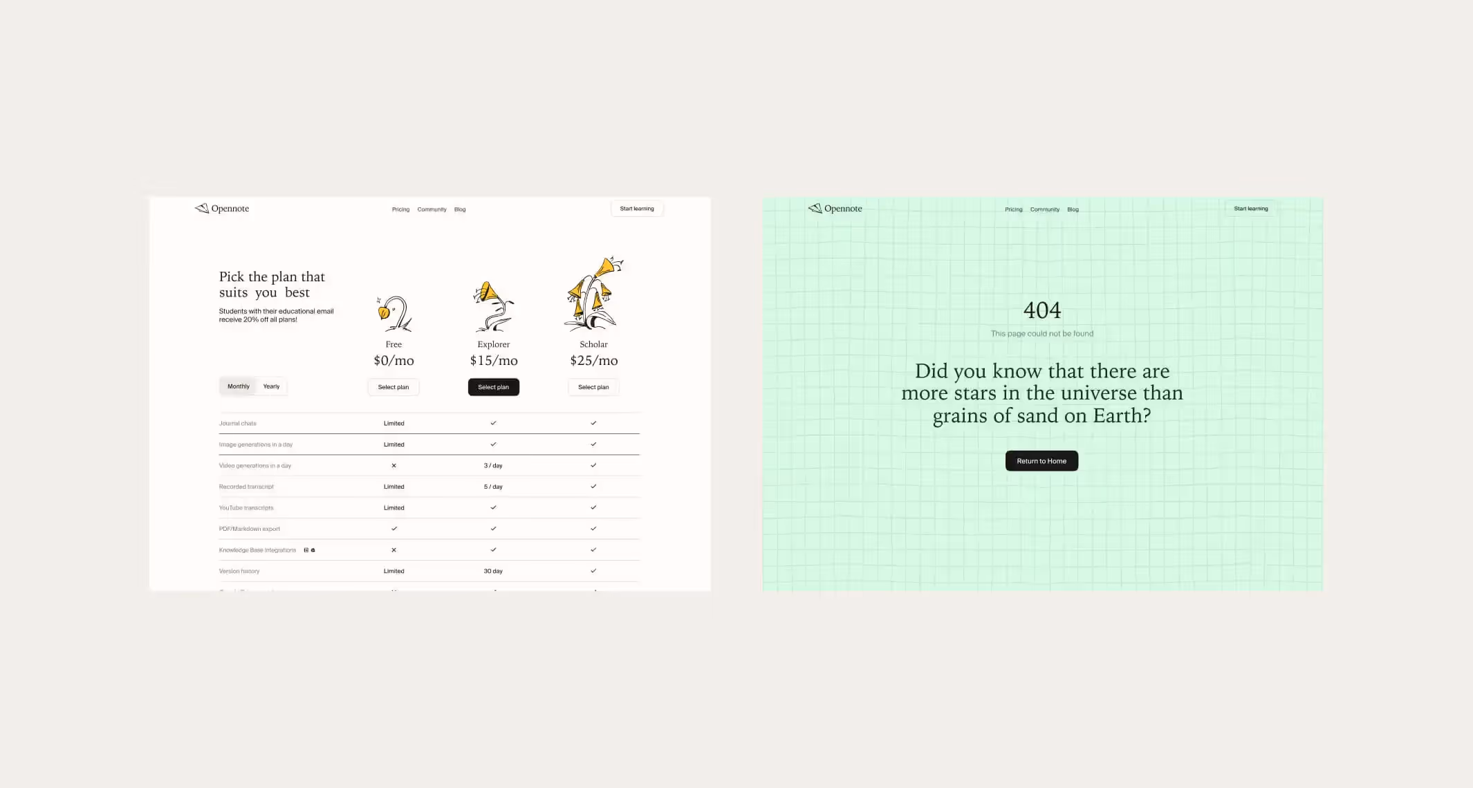 We imagined the website as a chit-chat in the hall of college. How would a classmate describe Opennote? Chill and lit. The website tells the story in a way that keeps users engaged while giving them all the key info. It mixes a sharp focus on the product interface with playful design.
